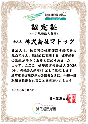 当社は、経済産業省が創設した「健康経営優良法人(中小規模法人部門)」に令和8年3月9日付で認定されました。